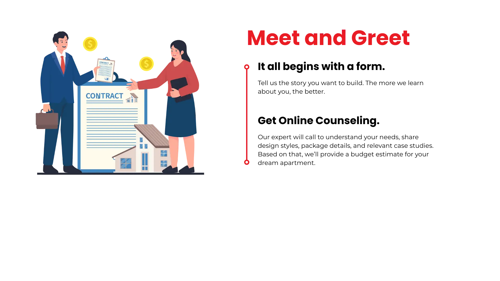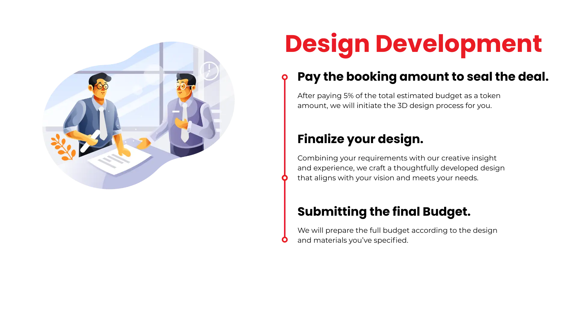 You’ll meet our expert designers, and they will listen to your requirements. (No payment is required.)