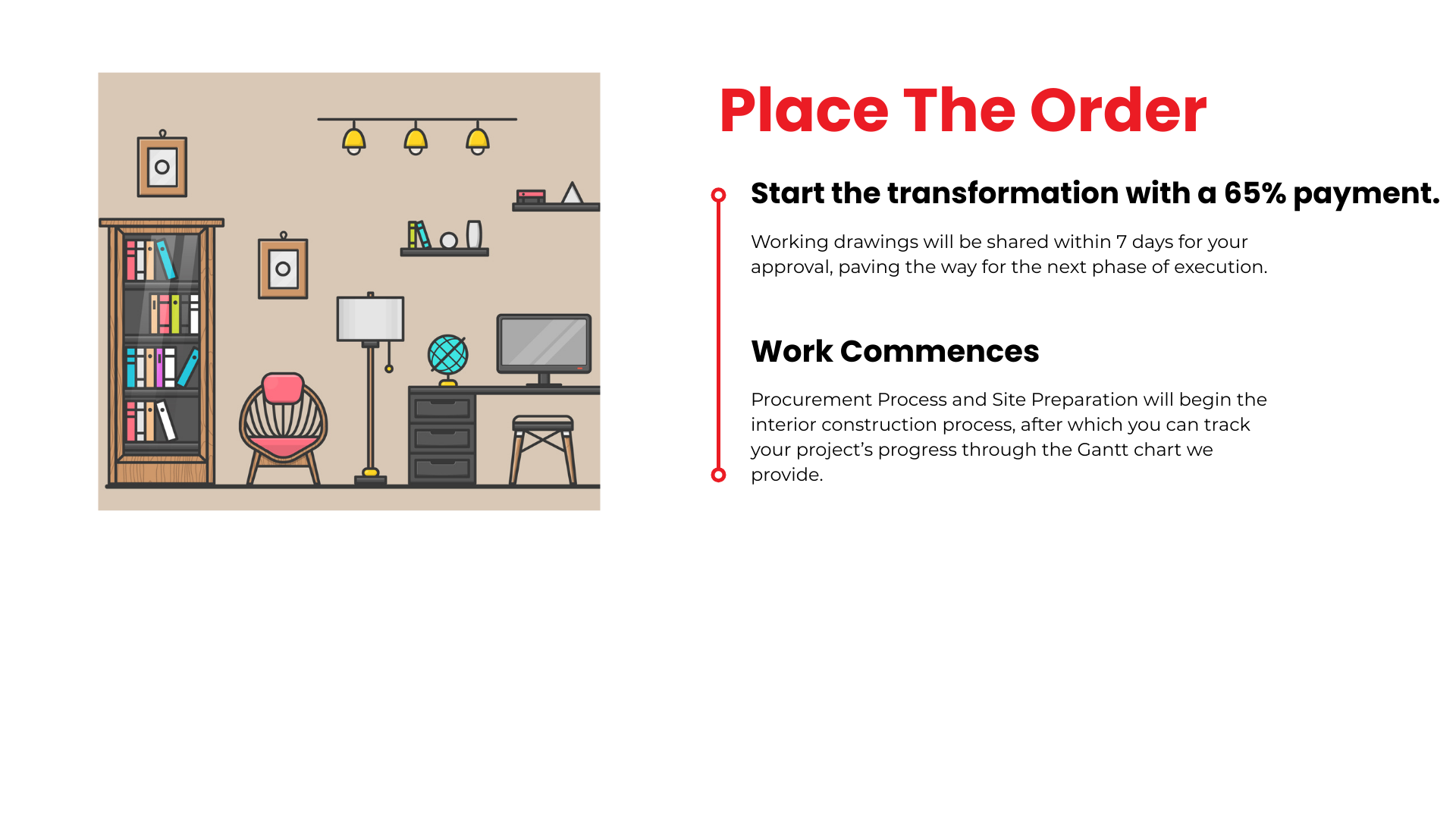 Once the order is placed, we will begin working on construction drawings. Upon your written approval, we will start procuring materials and preparing the site to commence work.